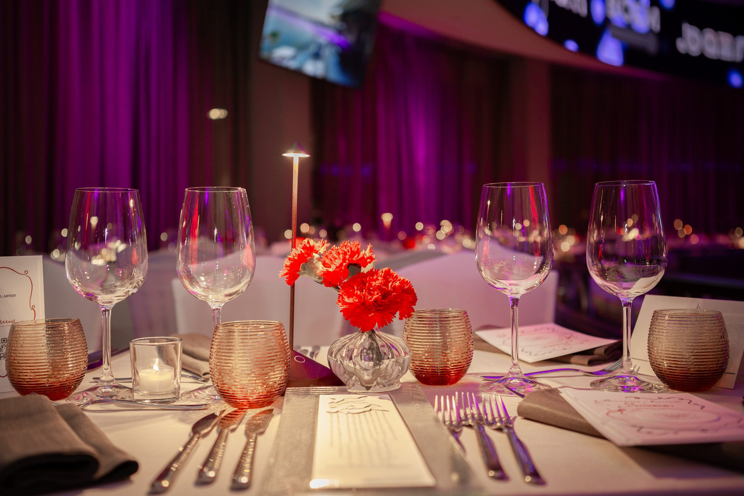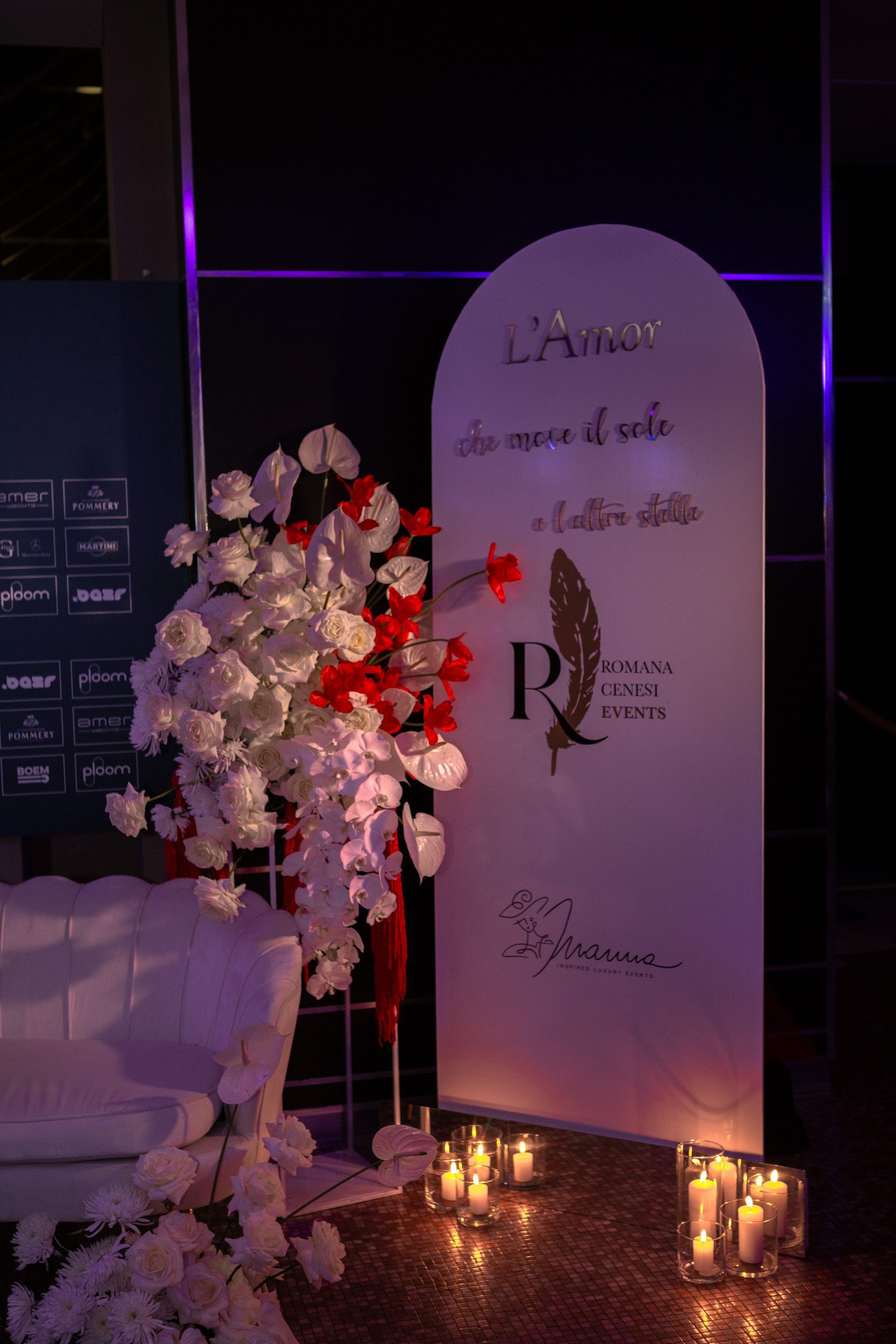 Ogni accorgimento è stato pensato per valorizzare al massimo il contesto e creare un’esperienza visiva integrata e coinvolgente. Da semplice cornice per la serata, il nostro allestimento è così diventato un punto d’incontro elegante e ricercato.